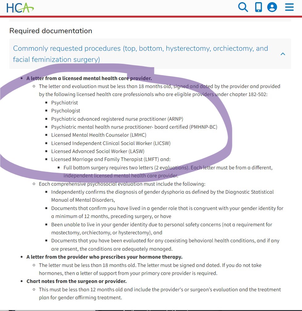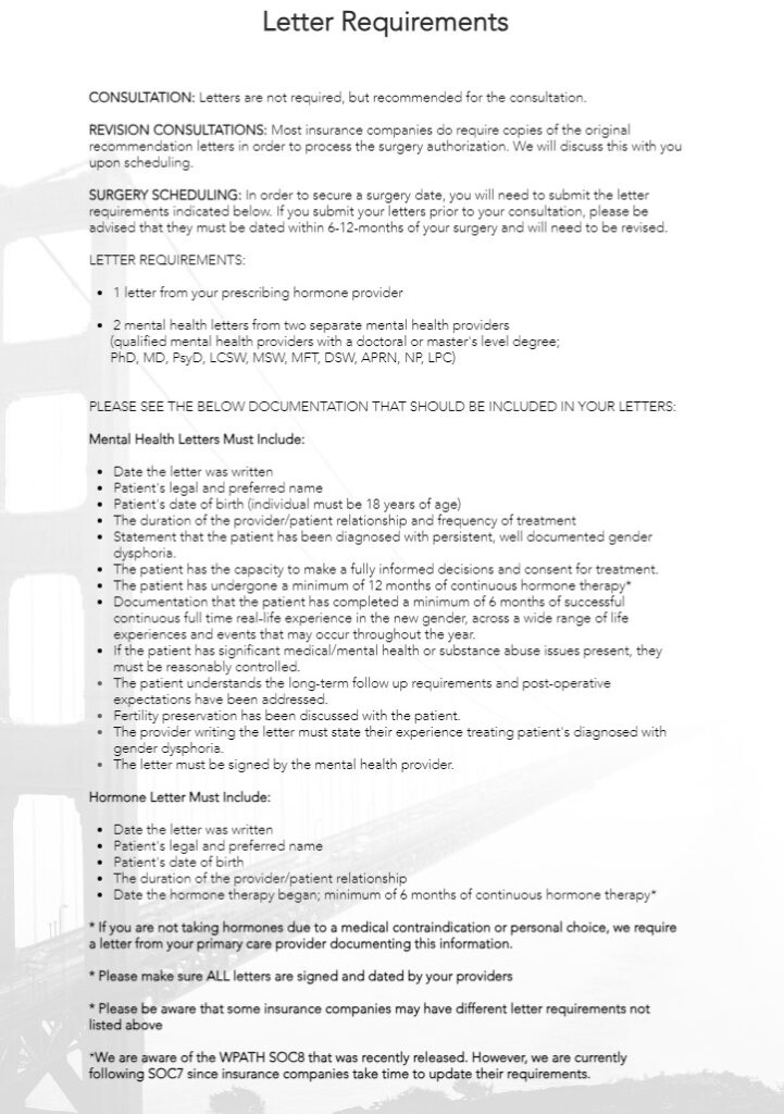 - Two letters: one from a mental health provider and one from your hormone prescriber or primary care provider. (see below screenshot)