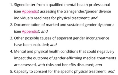 In SOC8 for adults, WPATH recommends that no letters be required. Further if an assessment letter should be required it can be written by ANY member of the care team (not just a mental health provider). Earlier versions required two letters. This lowers barriers to care, and we love it, but insurance companies and surgeon’s offices and hormone providers don’t HAVE to follow WPATH recommendations. You may still be asked to supply multiple letters of support.