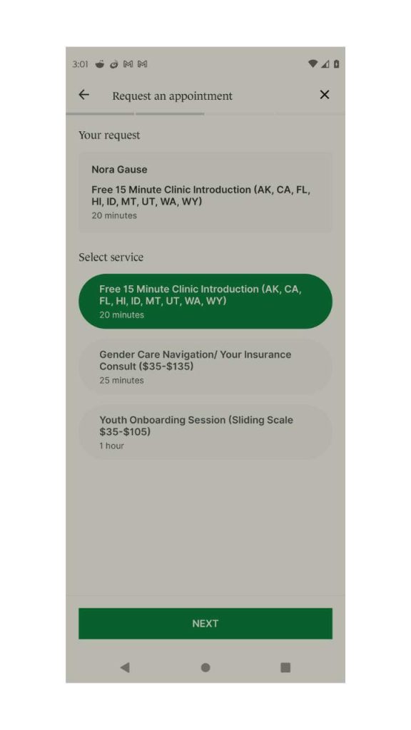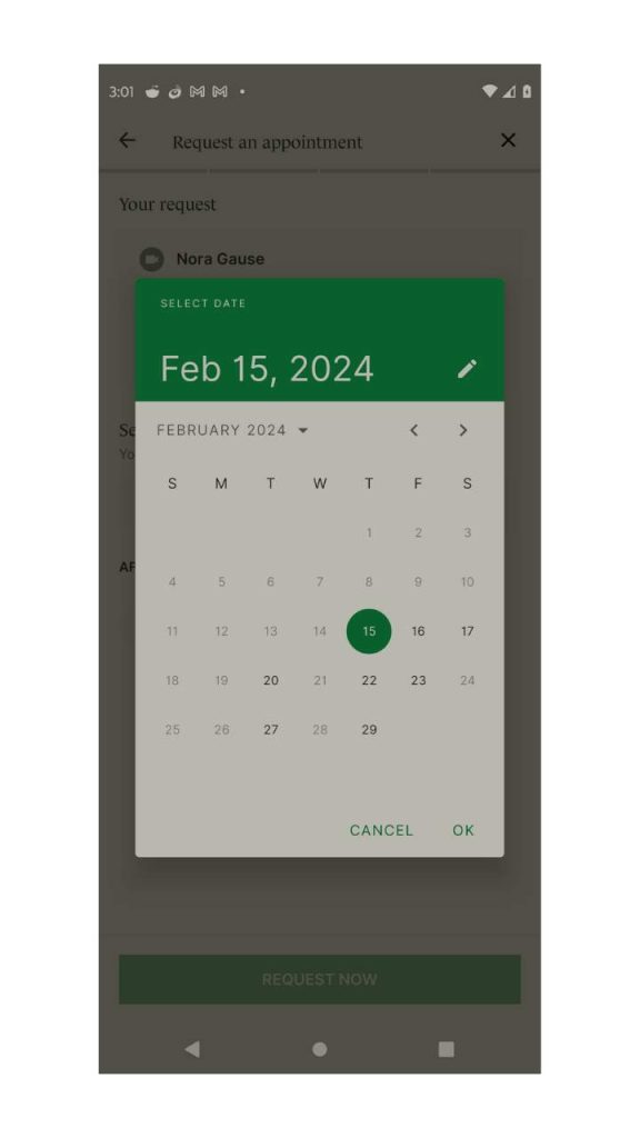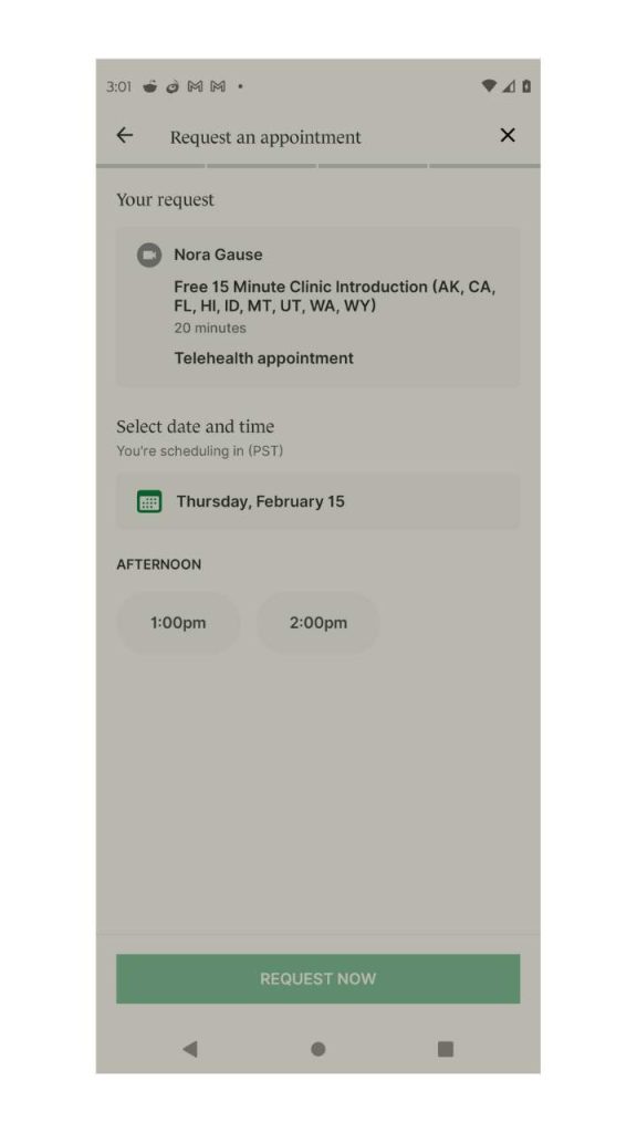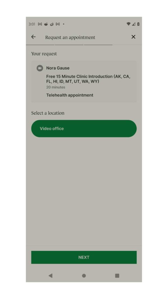 These are on an Android phone with a light filter on (because we block our blue light at night) and will take you through requesting a free introductory appointment with Nora.
