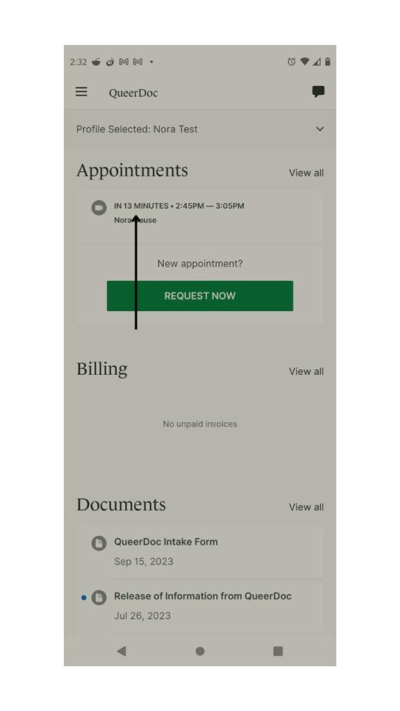 When you’re ready, click in to your appointment via the “Join Appointment” button.